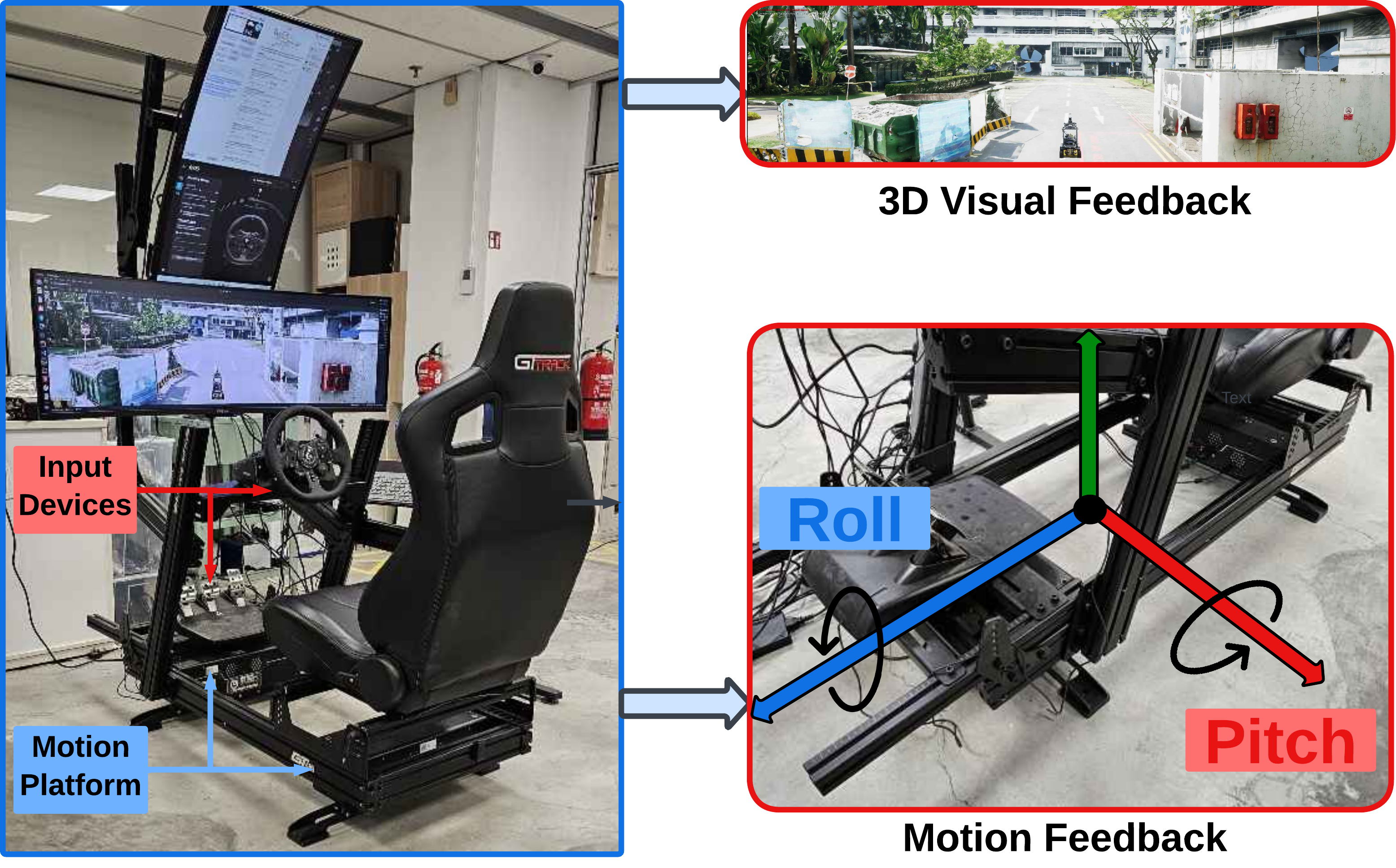 Mesh-based digital twin teleoperation with photogrammetry reconstruction and 3-DOF motion feedback.